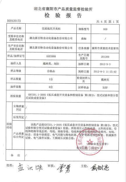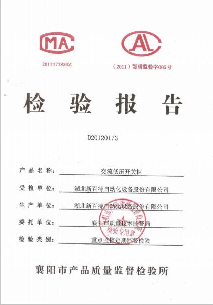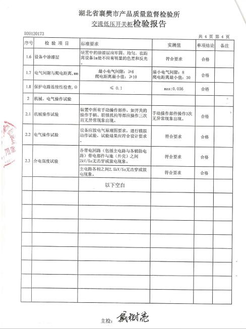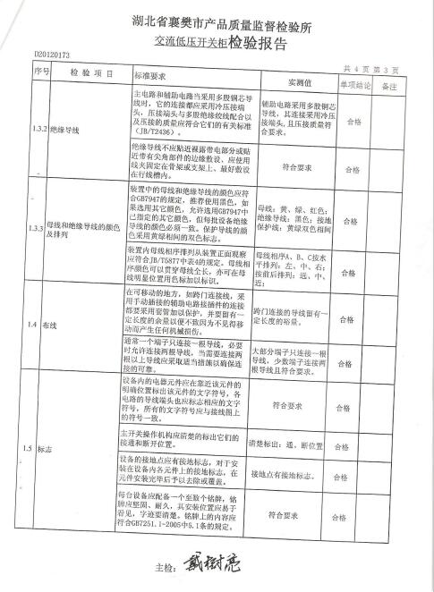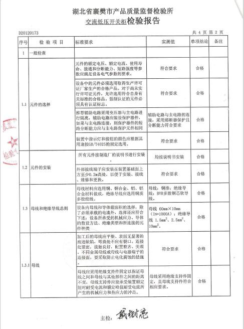 交流低壓開(kāi)關(guān)柜檢驗(yàn)報(bào)告