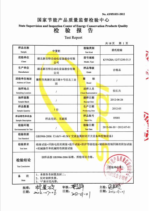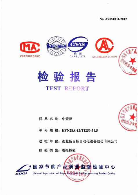 KYN28-12高壓開關(guān)柜型式試驗報告